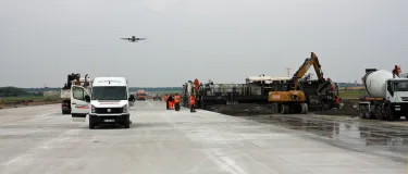 Unter Flugbetriebsflächen werden Runways (Start- und Landebahnen) sowie Taxiways und Vorfelder (Parkflächen vor den Terminals) zusammengefasst. Die Anforderungen an den Beton sind aufgrund der hohen dynamischen und statischen Belastungen sowie aufgrund des Einsatzes von aggressiven Taumitteln sehr hoch. Der Einbau erfolgt mit Gleitschalungsfertigern bis zu einer Breite von 15 m. Die Betondecke wird bis zu einer Dicke von 40 cm einschichtig und zweilagig mit Verdübelung und Verankerung eingebaut.
