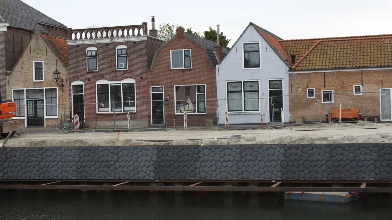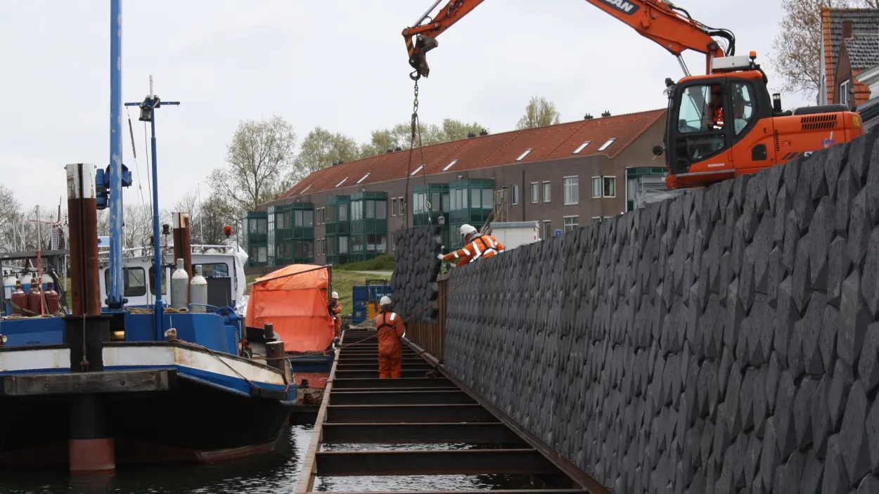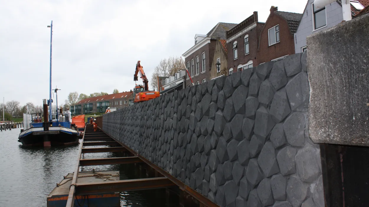 Die Gemeinde Schouwen-Duiveland beauftragte die Firma Aquavia, in der Altstadt von Brouwershaven (Provinz Zeeland/Niederlande) die bestehende Kaimauer zu ersetzen. Gemäß Bauverordnung gab es folgende Anforderung: Das Aussehen der neuen Kaimauer sollte sich am Erscheinungsbild des alten, aus Basaltsteinen bestehenden Mauerwerks orientieren.