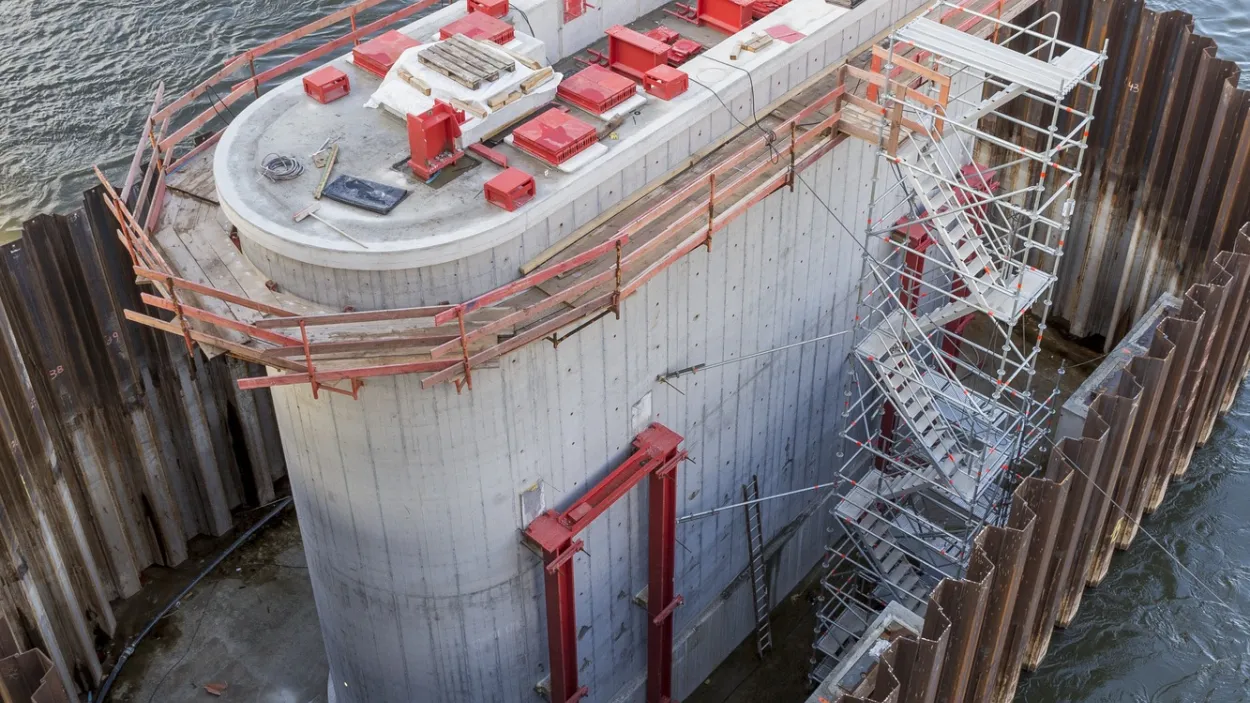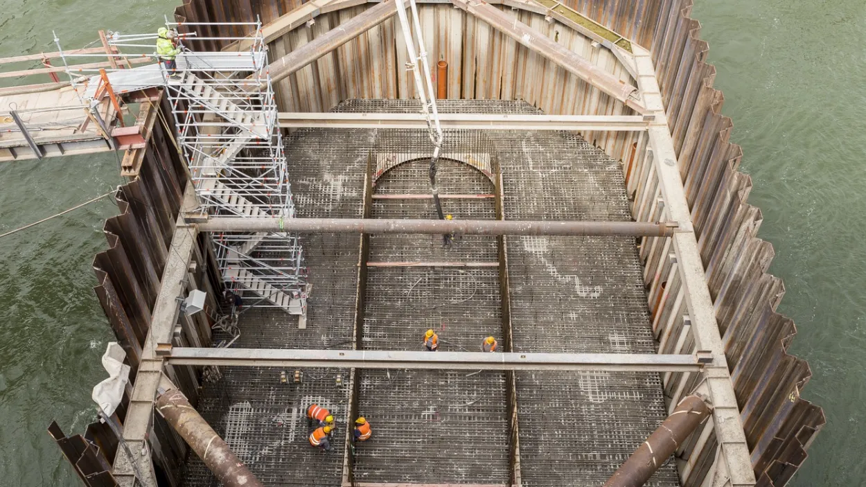 Weitere 15.000 Kubikmeter Ingenieurbetone fließen in die Anschlussbauwerke Mainz Mombach Herzstück und Herzstück West. Zu den besonderen Herausforderungen an die HBB als Betonlieferant zählte im Jahr 2015 der Überbau des Herzstücks in drei Abschnitten mit Betonagen von jeweils 900 Kubikmetern in den Monaten April, Juni und Juli. Aufgrund der langen Betonagezeiten war es notwendig, Betone mit unterschiedlichen Verarbeitbarkeitszeiten einzusetzen, sodass eine Vernadelung “frisch in frisch” gewährleistet werden konnte.