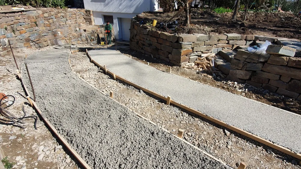 Holcim CampoDrain ist ein offenporiges Betonsystem zur Herstellung von farbigen und visuell anspruchsvollen Betonoberflächen. Seine ausgewiesene Tragfähigkeit bei gleichzeitiger Drainagefähigkeit des Oberflächenwassers ermöglicht hohe Dauerhaftigkeit. Damit eignet sich Holcim CampoDrain hervorragend für Geh- und Radwege mit hohem gestalterischen Anspruch und ist damit eine sehr gute Alternative zu Pflastersteinen, etwa Stellplätze, Gartenwege oder wie in diesem Beispiel Hauseinfahrten.